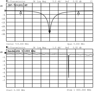 Sharp UHF fixed notch at Fo 719 MHz. Signals at and beyond 716 and 722 MHz